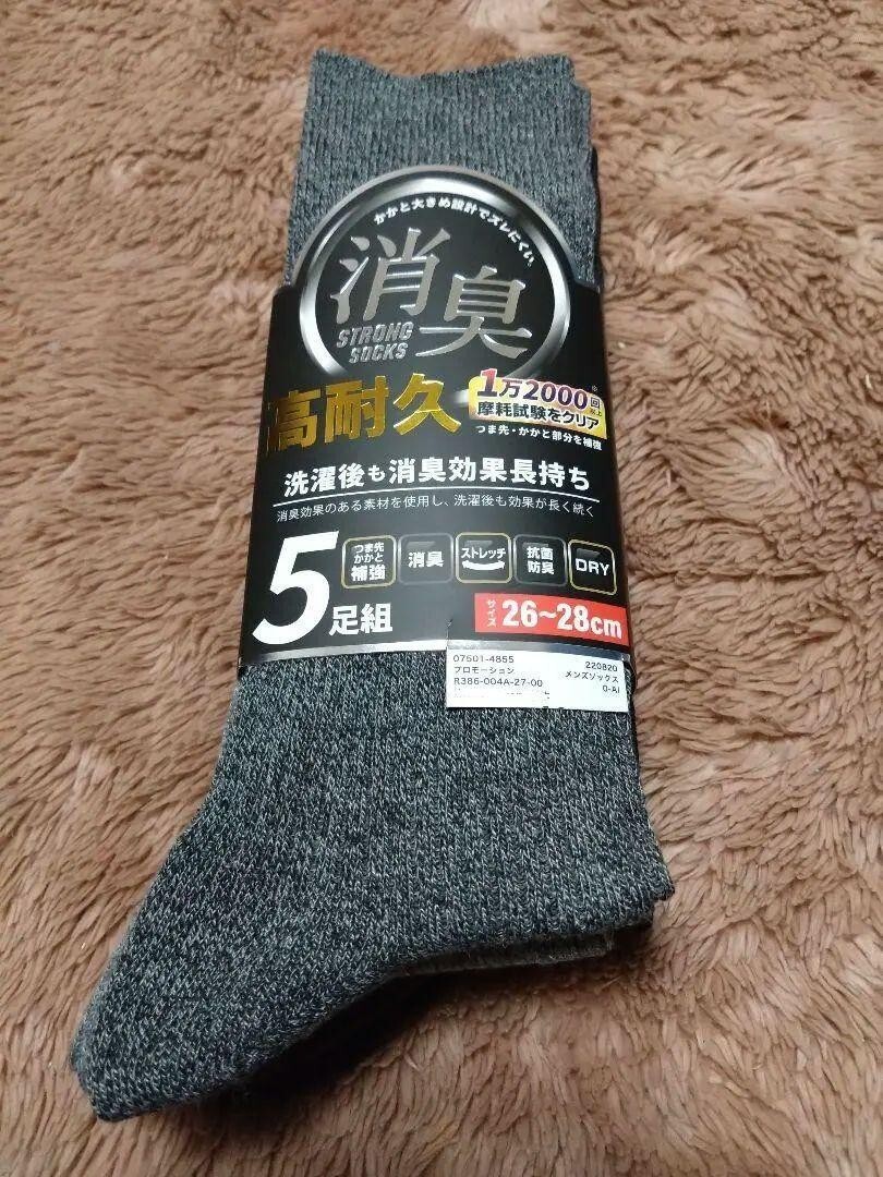 - ③メンズ ソックス 5足組 サイズ26~28cm つま先、かかと補強 ストレッチ 消臭 抗菌防臭 DRY 洗濯後も消臭効果長持ち