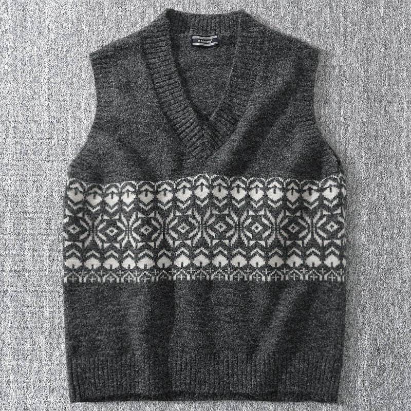 - 新品 DCKMANY ウール混 アメリカン ジャカード織り 袖なし Vネック ベスト 秋冬 メンズ 暖かい ノースリーブニット セーター 灰 T5160-2XL