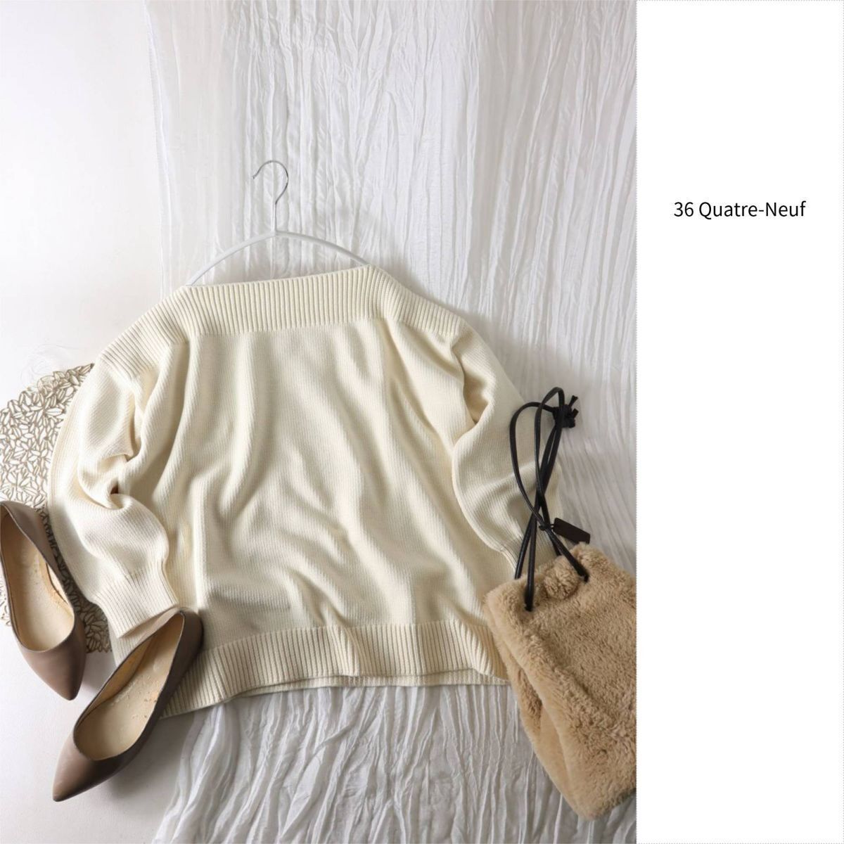 - 超美品☆カトルナフ 36 Quatre-Neuf☆ボートネック 編地切替ニット☆A-O 6160