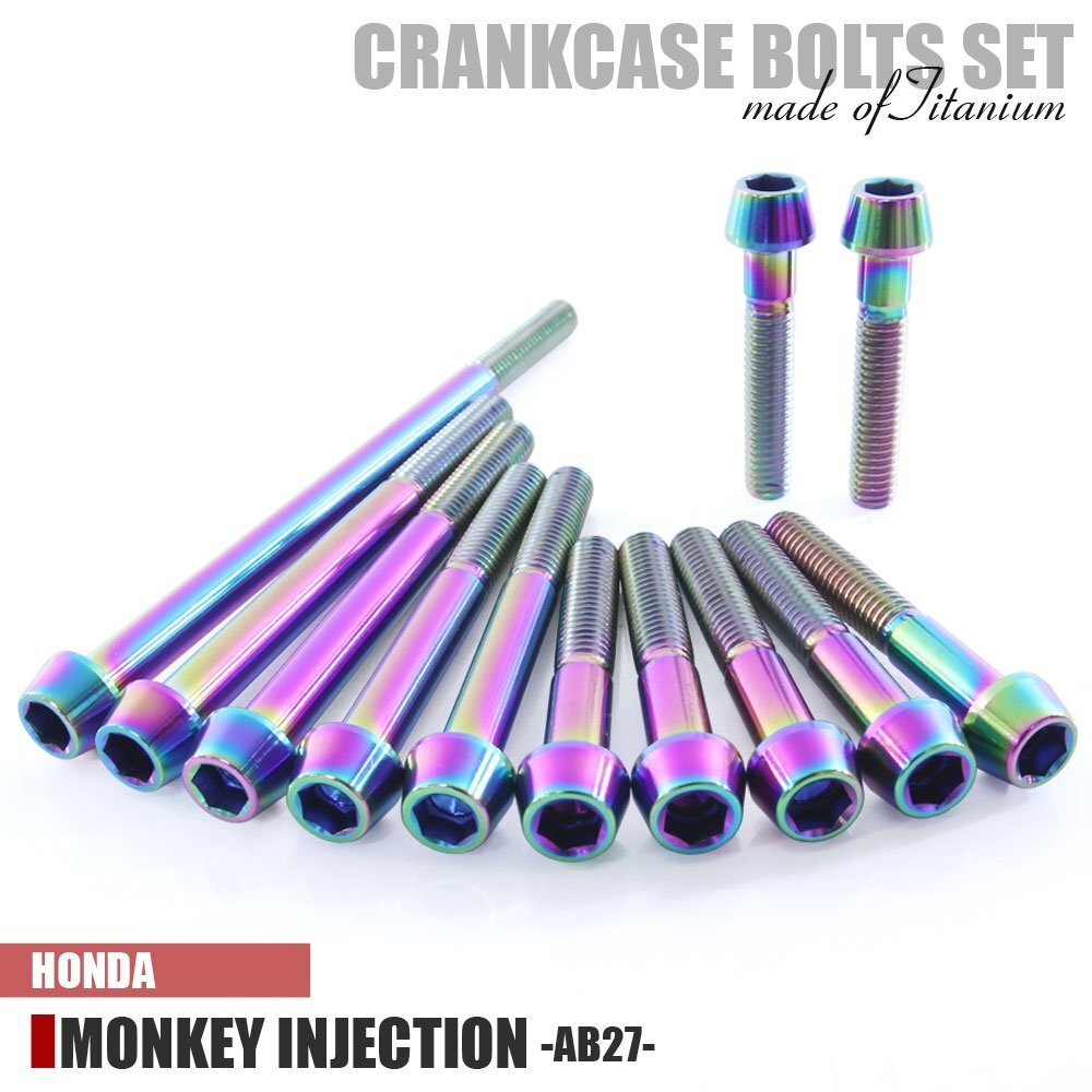 > チタンボルト ホンダ モンキー インジェクション車専用 クランクケース エンジンカバー ボルト セット 12本 焼き色 軽量化 カスタム チタン