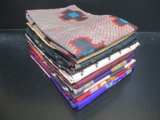 - 1円 中古 着物 リメイク 羽織 着物 10点まとめて 銘仙 時代紬 アンティーク 幾何学 花柄 古布 お稽古 お茶会【夢職】☆☆☆