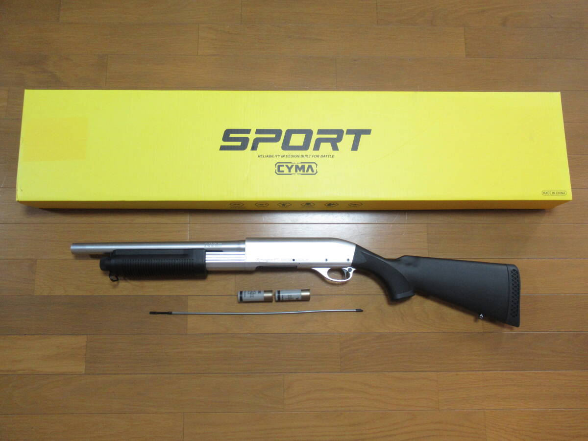 > CYMA ポンプアクションエアーショットガン CM.350SV M870 ショート (シルバー) 中古品 3発同時発射 元箱・クリーニングロッド付き