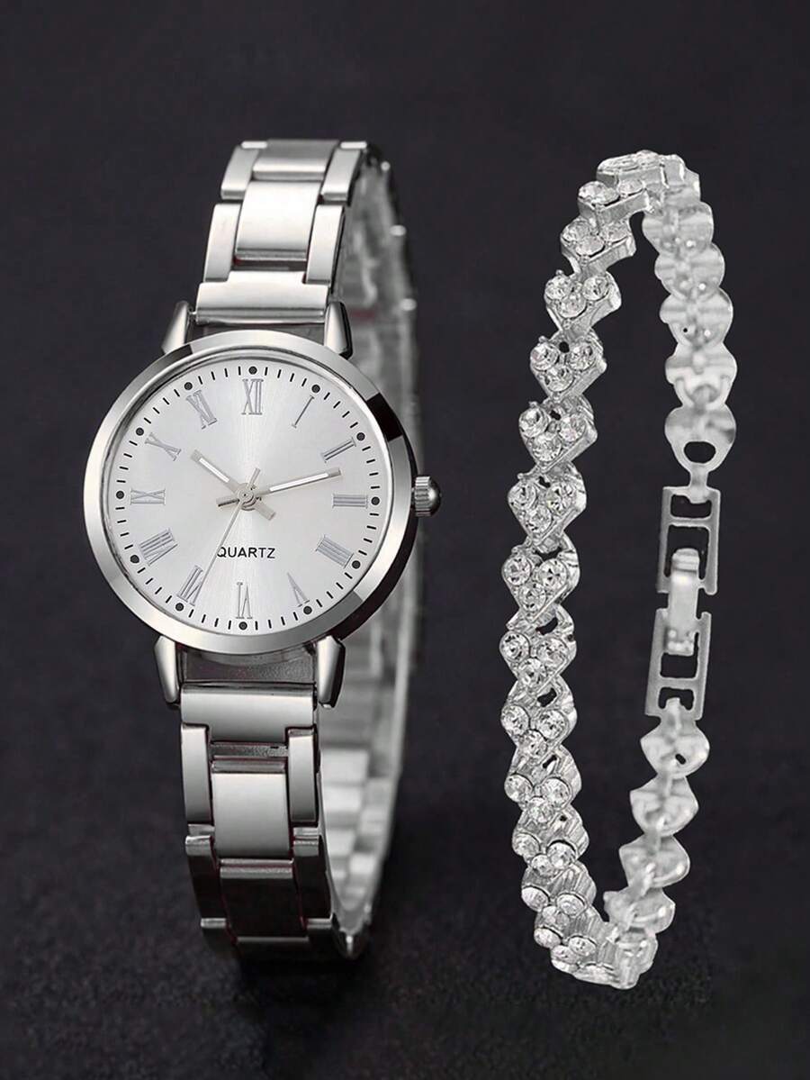 > 腕時計 レディース セット ファッショナブルでミニマリストな女性用ローマ数字ディスク クォーツ腕時計とジュエリーブレスレットセット
