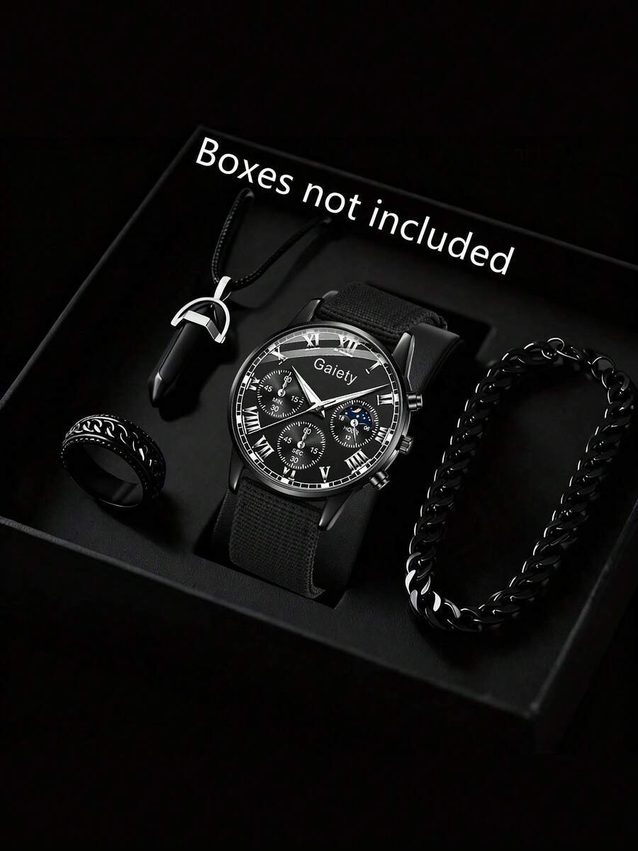 > 腕時計 メンズ セット 4点セット メンズ腕時計、高級ビジネス ブラック クォーツ腕時計、メンズファッションブレスレット、ネックレ