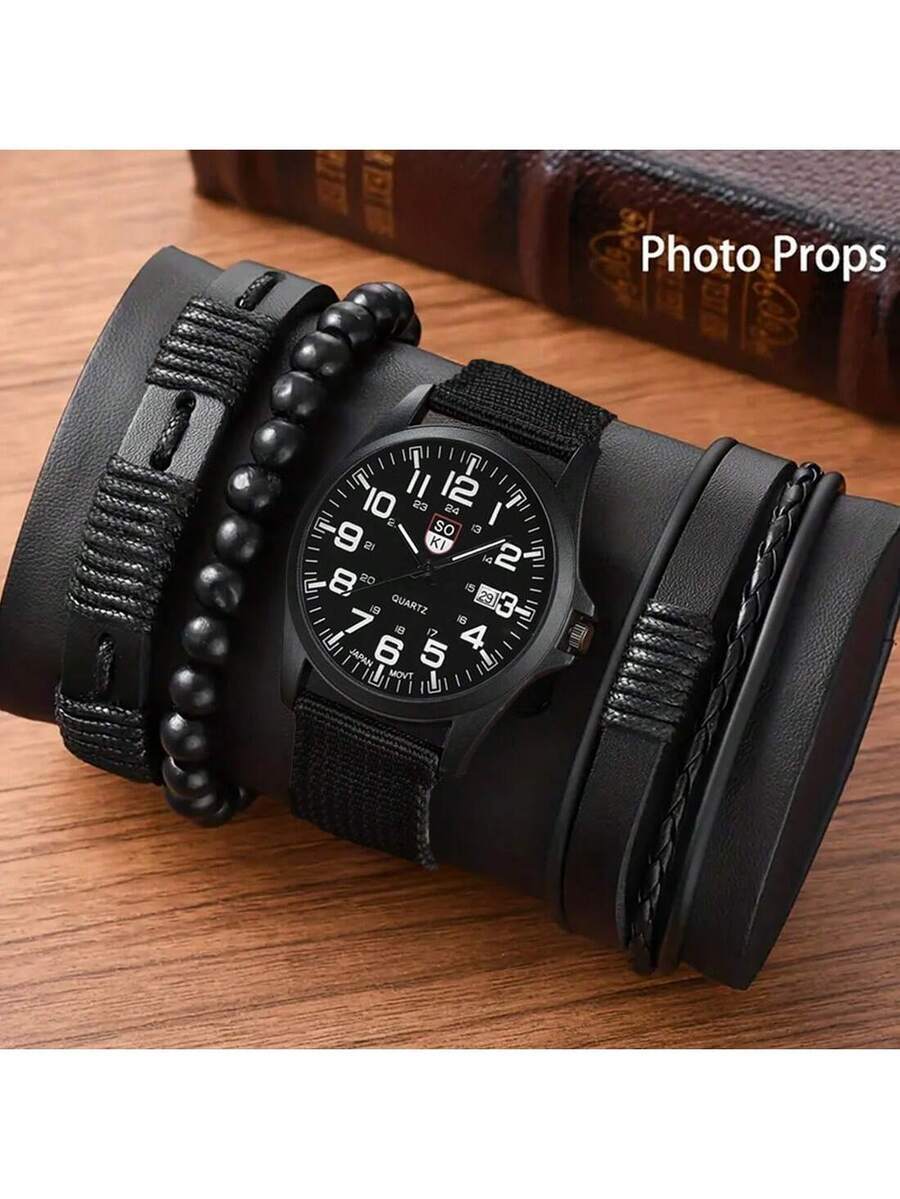 - 腕時計 メンズ セット 1セット メンズ腕時計 カレンダー スポーツ カジュアル アラビア数字 ラウンドダイヤル PUストラップ