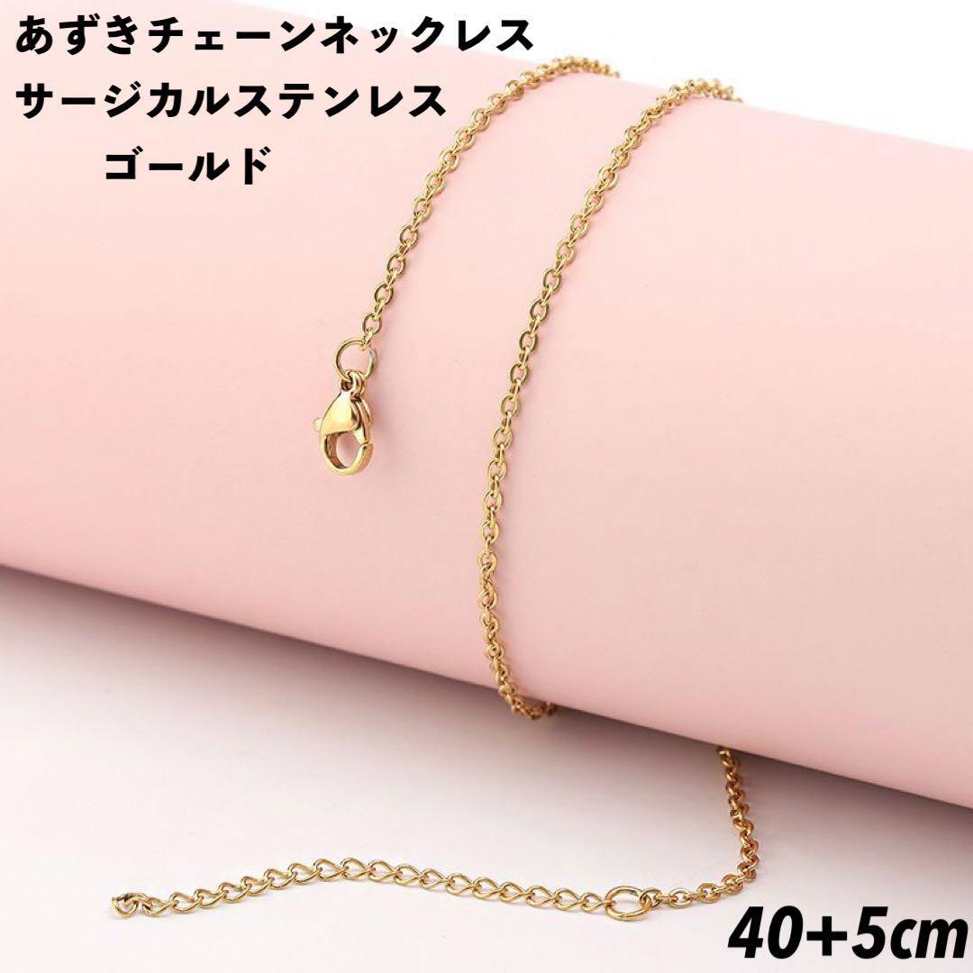 - サージカルステンレス あずきチェーン ゴールド 40cm+5㎝