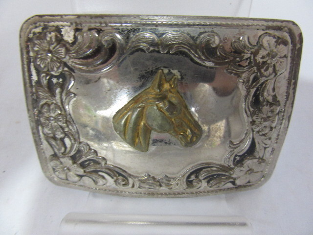 ◆ヴィンテージ 馬 ベルト スクエア バックル ニッケル メンズオートバイジーンズアクセサリー 中古◆0436拍卖