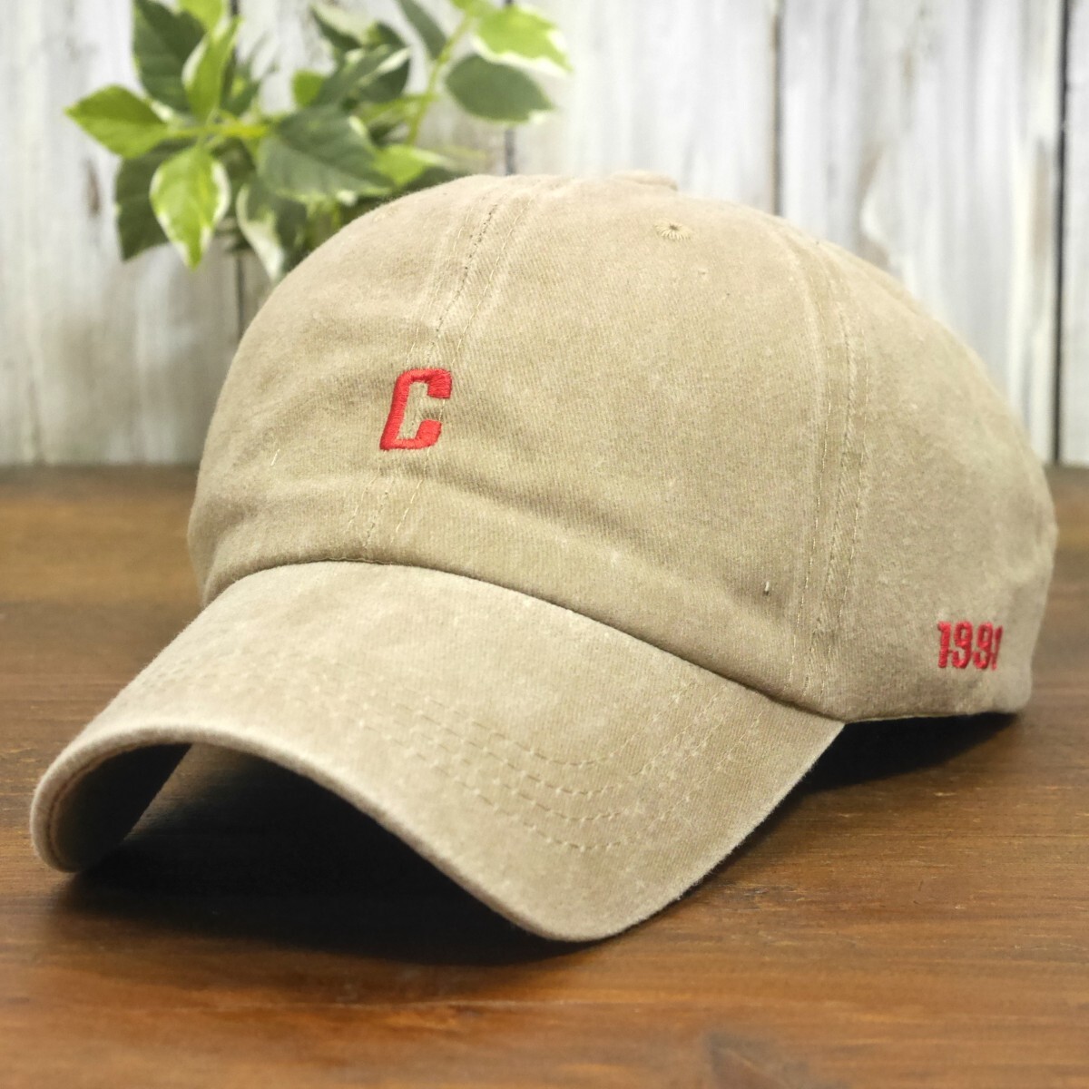 > ロゴ C 1999 ビンテージ ダメージ 色あせ キャップ ベージュ シンプル サイズ調整可能 送料\450 男女OK メンズ レディース