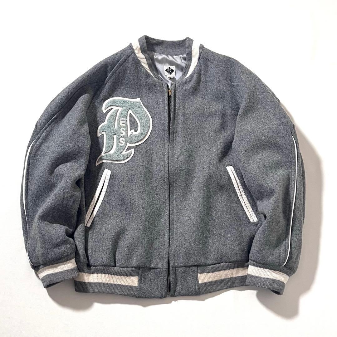 > 【良品】ポストオーバーオールズ ウール スタジャン USA製 90s アーカイブ 特大46サイズ バーシティ ジャケット ロゴ ワッペン