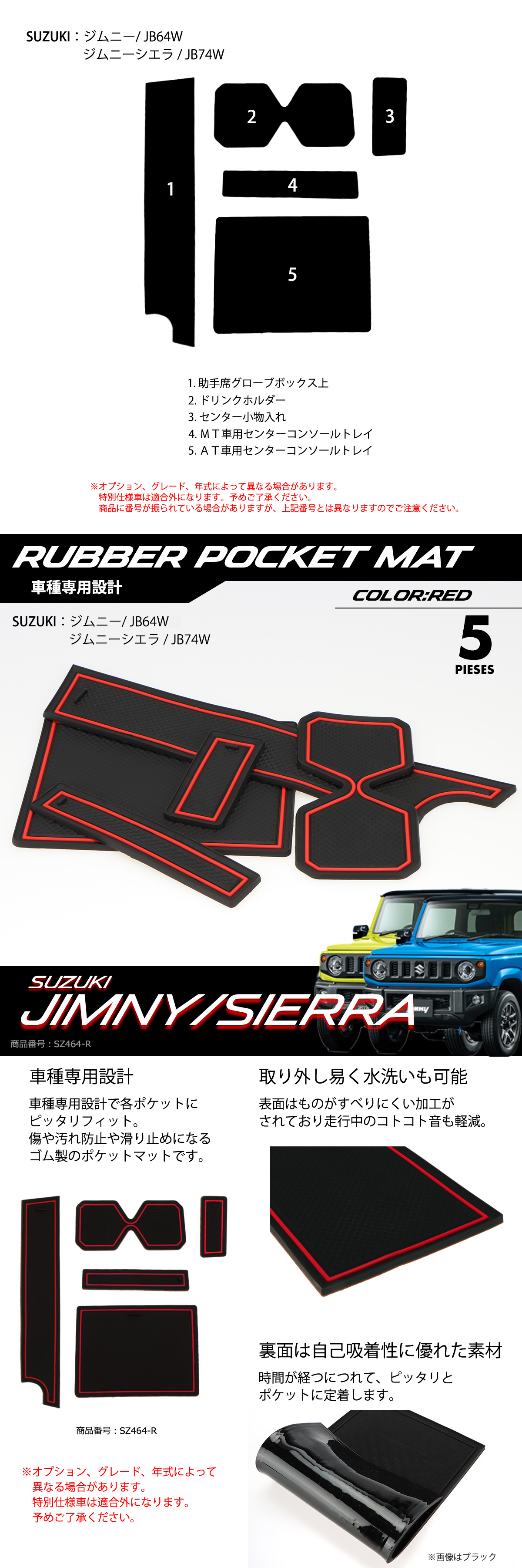 - ジムニー ジムニーシエラ ジムニーノマド ポケットマット ラバーマット ゴムマット 内装 パーツ JB64W JB74W JC74W レッド SZ464-R