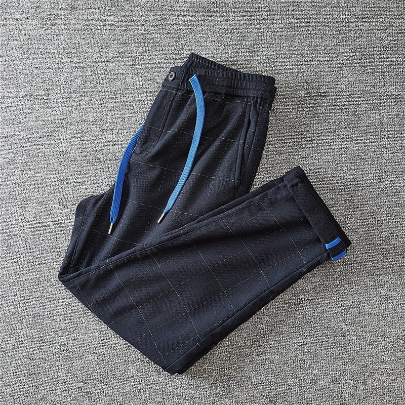> 新品 色織り チェック柄 ウォッシュドコットン テーパードパンツ メンズスラックス 春秋 ゴムウエスト 紳士 ロングパンツ 黒 青 T6133-L