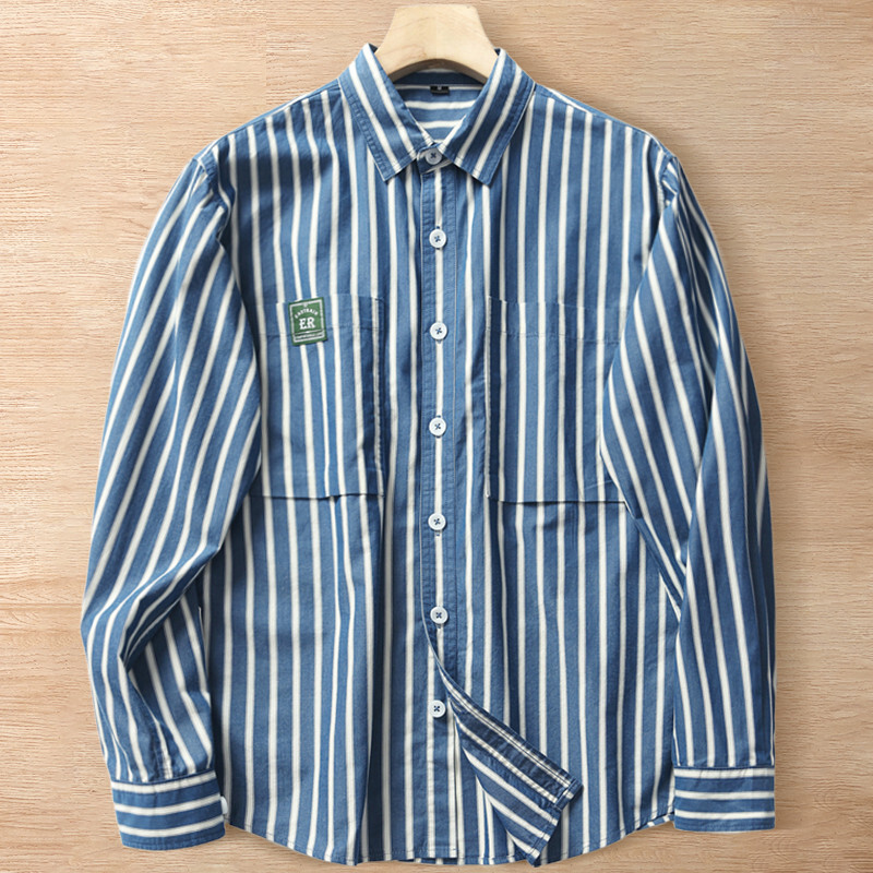 - A6905-L 紺色 新品 綿100% 長袖シャツ メンズ 縦縞 ボタンダウン レギュラーカラー 春秋 コットン オーバーシャツ カジュアル トップス