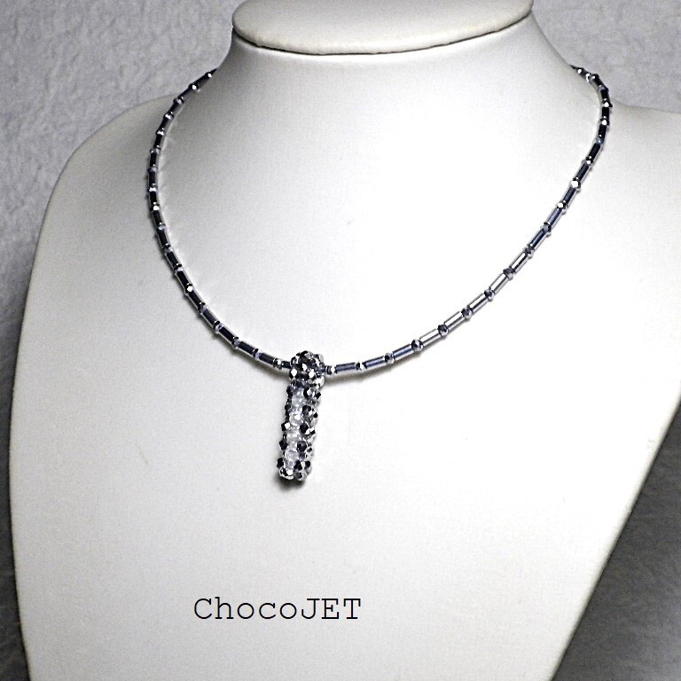 - チェコビーズ・ロッドネックレス シルバービーズネックレス 棒状銀色