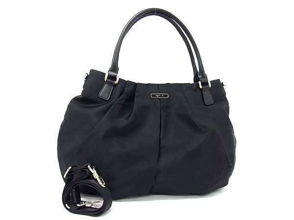 - 1円 ■美品■ agnes b. アニエスベー ナイロン 2WAY クロスボディ トートバッグ ショルダー 斜め掛け 肩掛けかばん ブラック系 GA5866