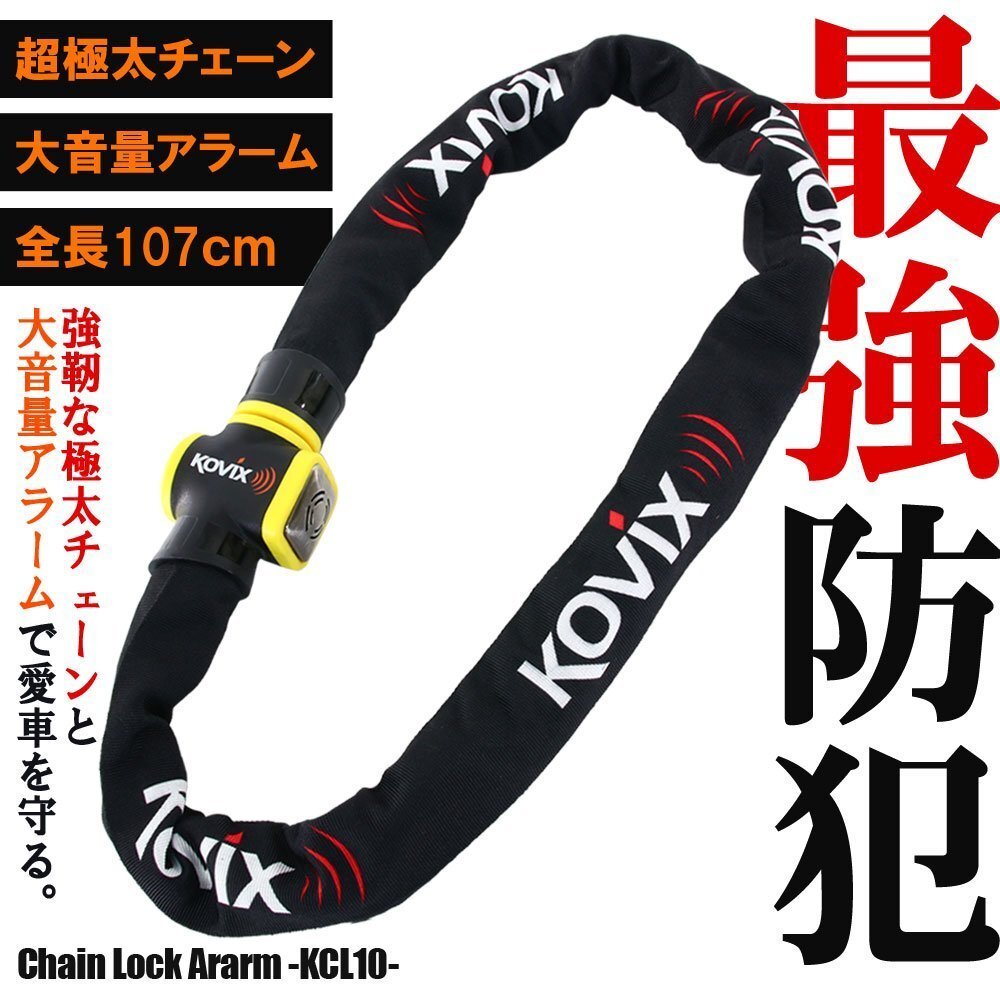 > KOVIX チェーンロック アラーム内蔵 120db 大音量 頑丈 極太 盗難防止 セキュリティ 振動感知 防犯 地球ロック KCL10 バイク オートバイ