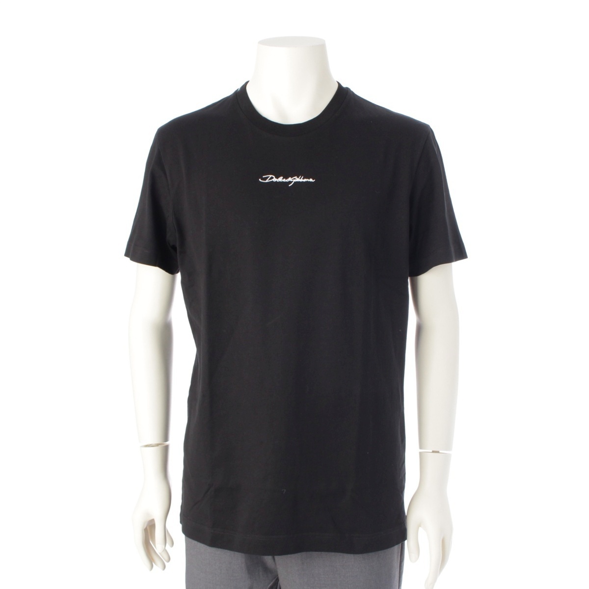 > ドルチェアンドガッバーナ コットン ロゴ刺繍 ロゴパッチ 半袖Tシャツ ブラック 50【中古】