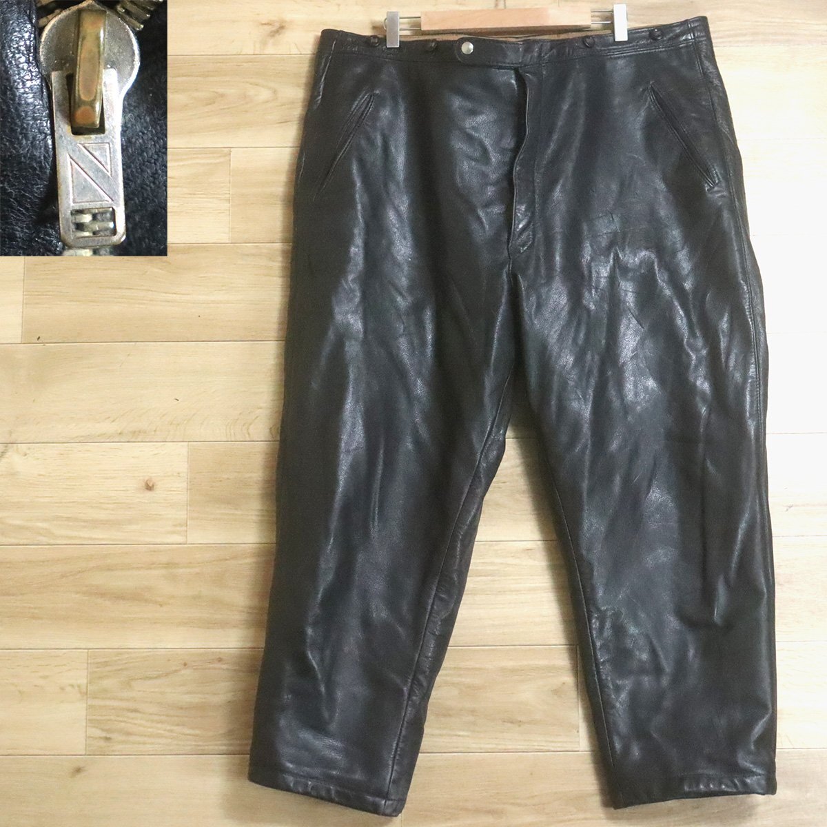 - I1T/D10.30-2 ビンテージ ユーロミリタリー モーターサイクルパンツ 本革 レザーパンツ 革パンツ 皮パンツ ヴィンテージ