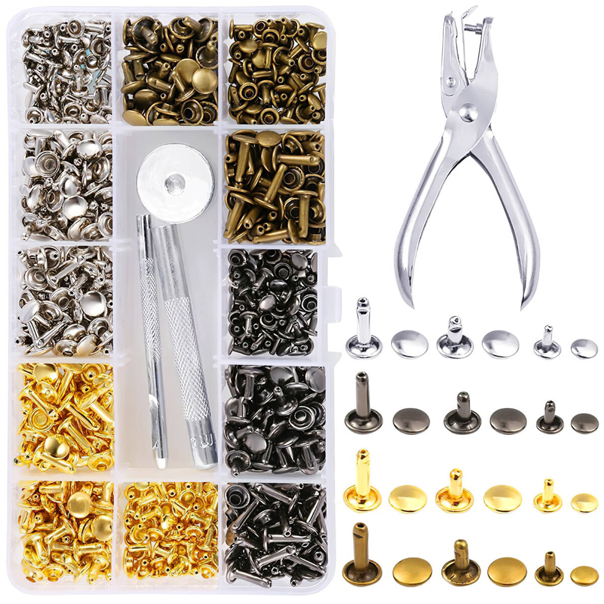 - レザークラフト カシメセット 3サイズ 4種色リベット スタッズ 底鋲 打ち具セット 丸形 穴あけ ベルト 布革細工 工具 240個セット ;J4463;