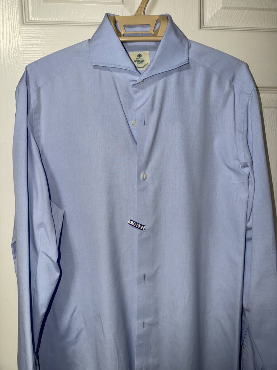 - 美品! サイズ40くらい Luigi Borrelli Napoli ドレスシャツ 水色 Lサイズ 表示42/16-1/2