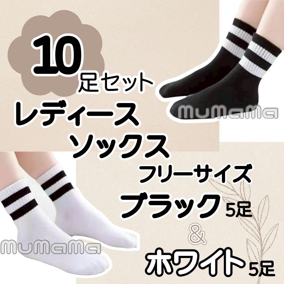 - レディースソックス 10足セット オールシーズン ボーダー クルーソックス