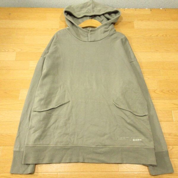 - ◎良品!quadro クアドロ エメラルド 天竺プルパーカー スウェット フーディー 首ボタン メンズ グレー Mサイズ◆AA5044