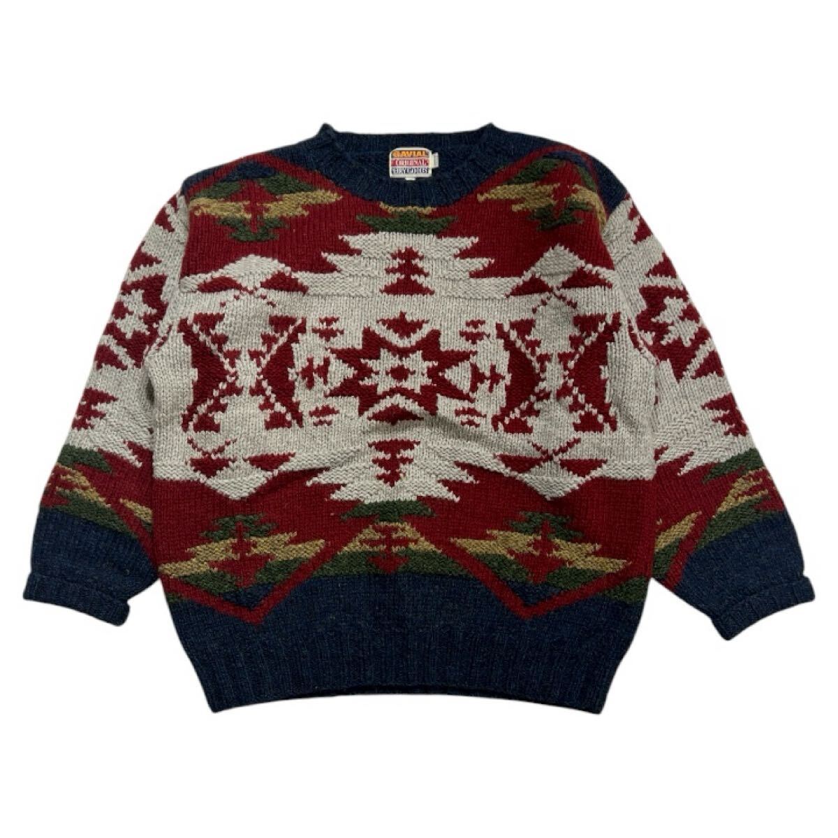 > 90s ヴィンテージ ■ GAVIAL ギャヴィル ■ ネイティブ 編み柄 肉厚 ウール ニット セーター レッド×グレー×ネイビー×グリーン F