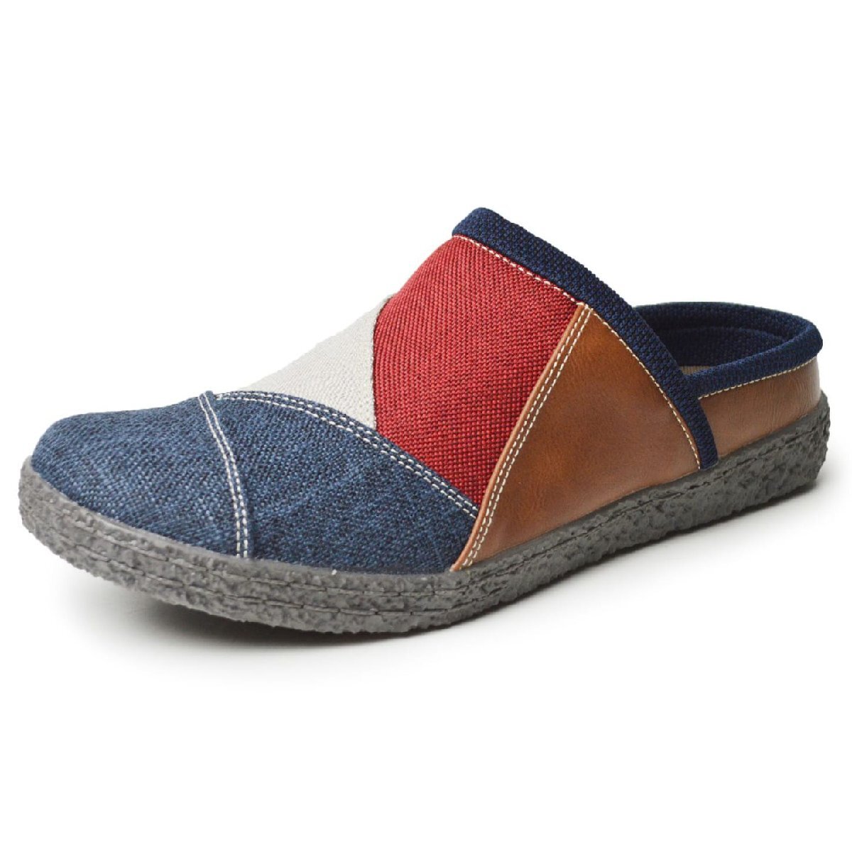 > 新品■24.5~25cm サボサンダル メンズ スリッポン クロッグ 軽量 靴 着脱簡単 トリコ パッチワーク 屈曲性 スリッパ デニム【エコ配送】