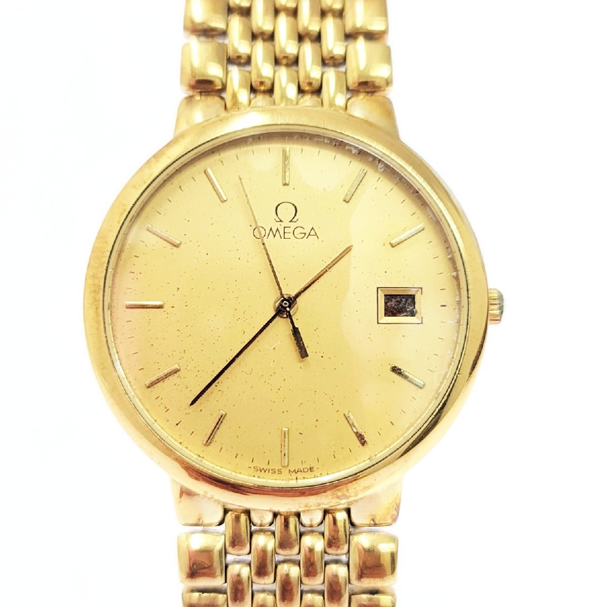 > 【1円スタート】OMEGA オメガ デビル ラウンド デイト GP×SS ゴールド文字盤 クオーツ ボーイズ腕時計 ジャンク 510779