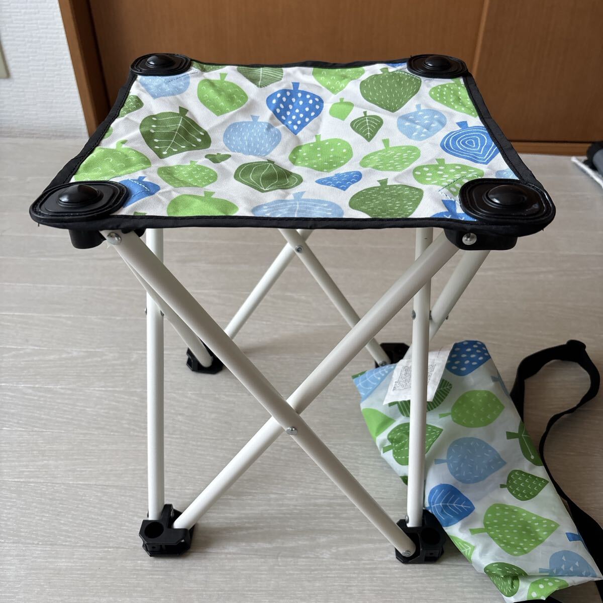 > IKEA STEKNING アウトドアチェア 葉っぱ柄 高さ35㎝ 折り畳みチェア イケア ステクニング 正方形 キャンプ 椅子 緑 折りたたみチェア 冬