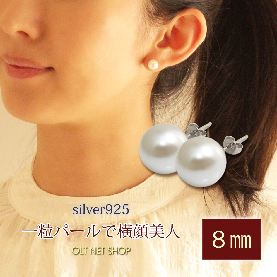 > 新品/ピアス/一粒/パール/8mm/真珠/シンプル/シルバー/女性/レディース/両耳/フォーマル/普段使い/銀/SV925 刻印