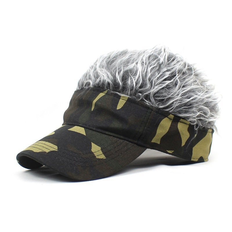 - ウィッグ付サンバイザー 帽子 カツラ ウィッグヘア 髪の毛付き ウィッグ付き アウトドア スポー ゴルフ n548-C グレー