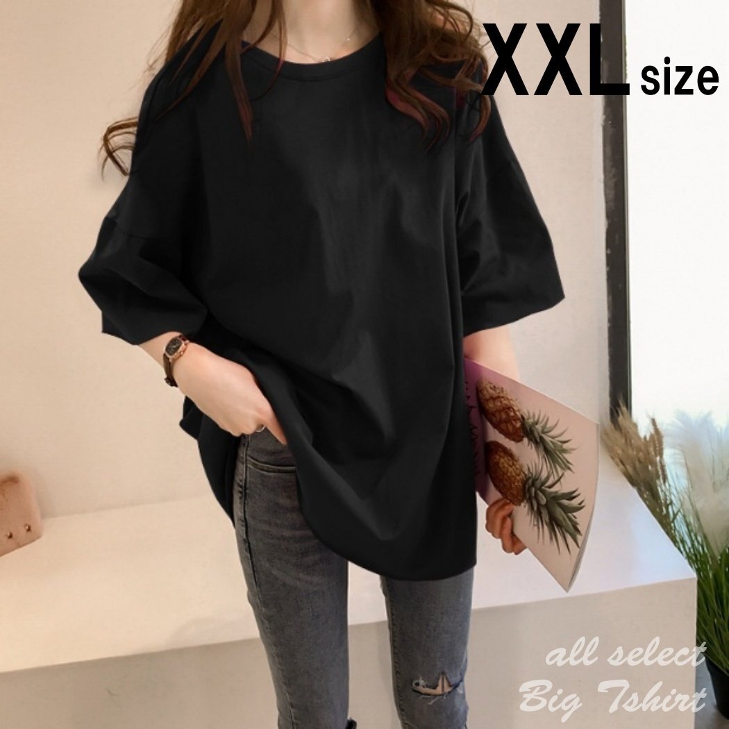 - ブラック XXLサイズ ビッグ Tシャツ シンプル 大きめ 無地 着痩せ ゆったり 半袖 トップス 夏 ビッグT tシャツ カットソー 大きいサイズ