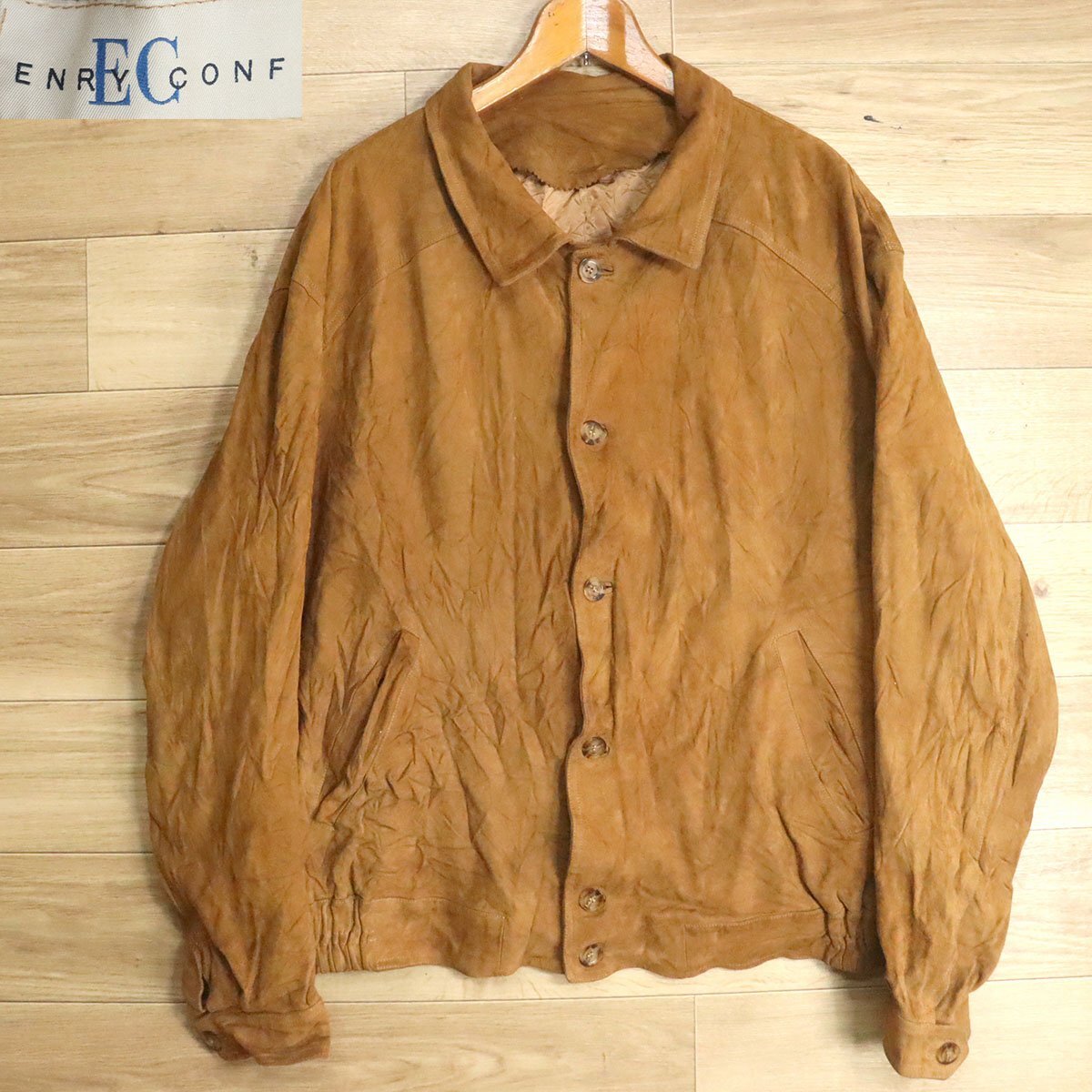 > ?8K/S6.11-4 ユーロ古着 イタリア製 ENRY CONF スウェード レザージャケット 本革 スエード レザーブルゾン キャメル