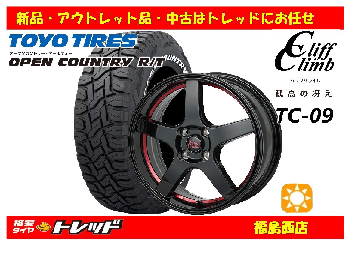 - 福島西 新品 サマータイヤホイール4本SET クリフクライム TC-09 15インチ 4.5J 100/4H +45 & トーヨー オープンカントリー R/T 165/65R15