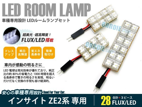 > ZE2系 インサイト 3ピース 合計28ブロック発光 ルームランプ LED化 白発光 高輝度FLUXタイプ 一台分セット