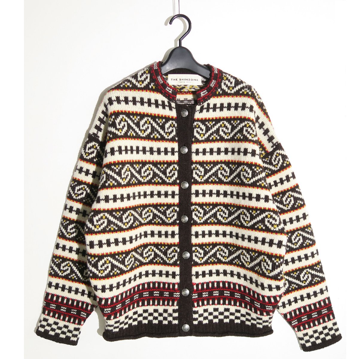 > 24AW THE SHINZONE FAIR ISLE KNIT CARDIGAN 定価50,600円 24AMSNI07 シンゾーン フェアアイルニットカーディガン ブラウン コンチョボタン