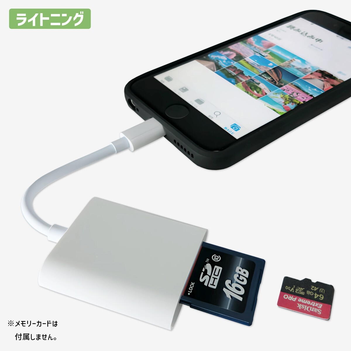 - フ ライトニング SD/microSDカードリーダー メモリーカードリーダー デジカメ iPhone lightning Apple SDカード microSD カメラリーダー 01