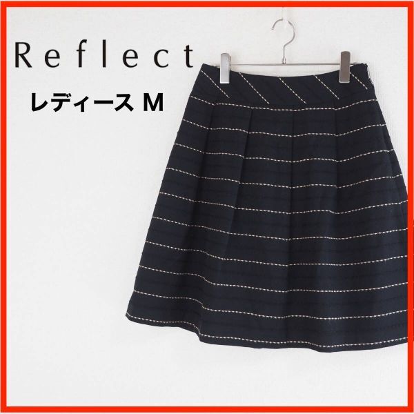 - A3854★美品★Reflect*レディース*膝丈*フレアスカート*9*M*黒*ボーダー