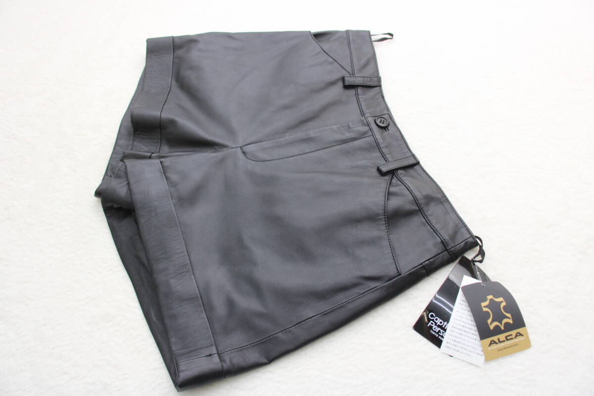 - 6403 新品タグ付き 高級羊革レザー裾折りホットパンツ ブラック11号サイズ