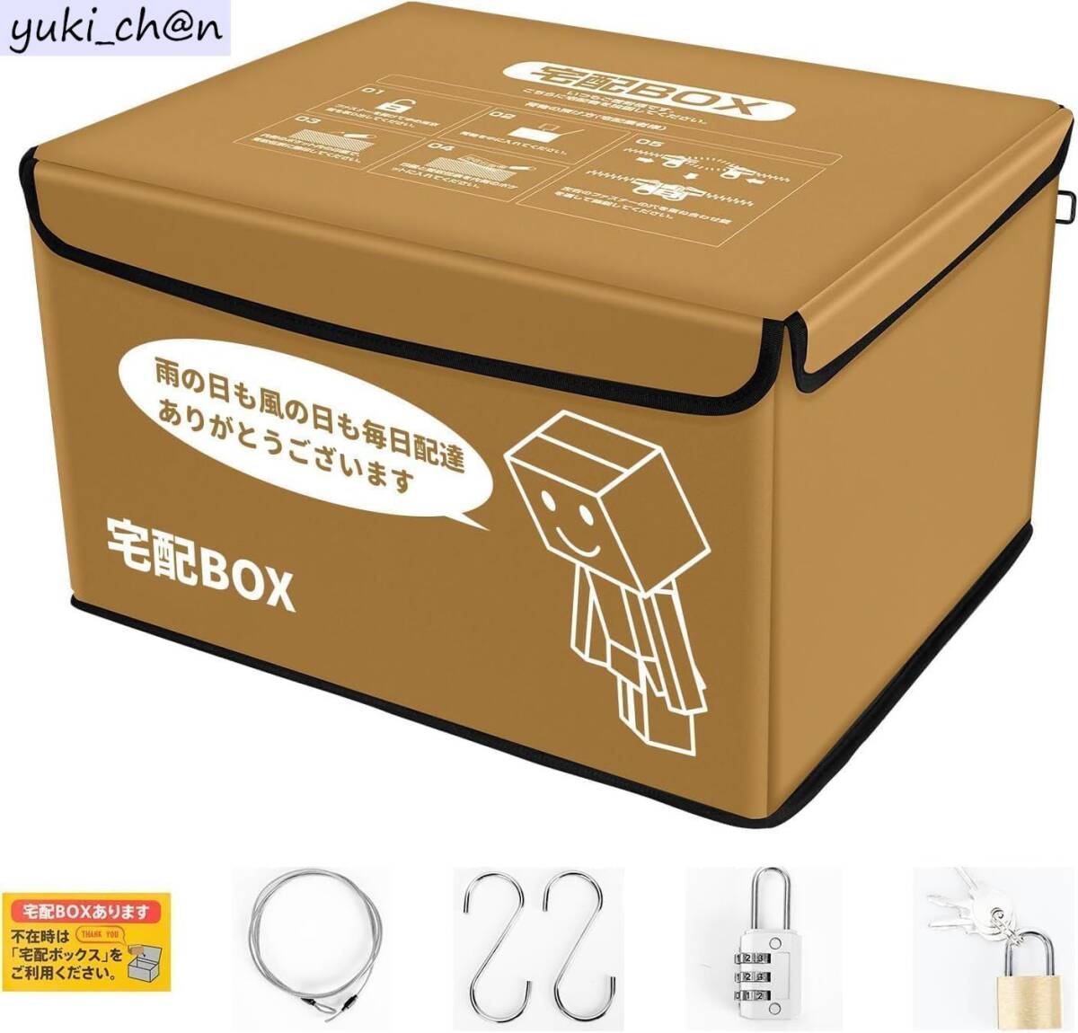- 宅配ボックス 大容量75L 折りたたみ式 防水 保冷 盗難防止 ワイヤー付き 鍵付き 屋外用 置き型 掛け型 ブラウン南京錠