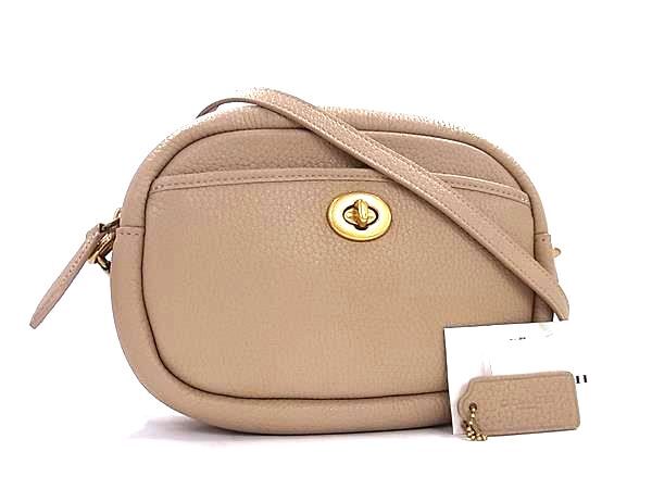 - 1円 ■極美品■ COACH コーチ C5809 カメラバッグ レザー ターンロック クロスボディ ショルダーバッグ 斜め掛け ベージュ系 FU4846