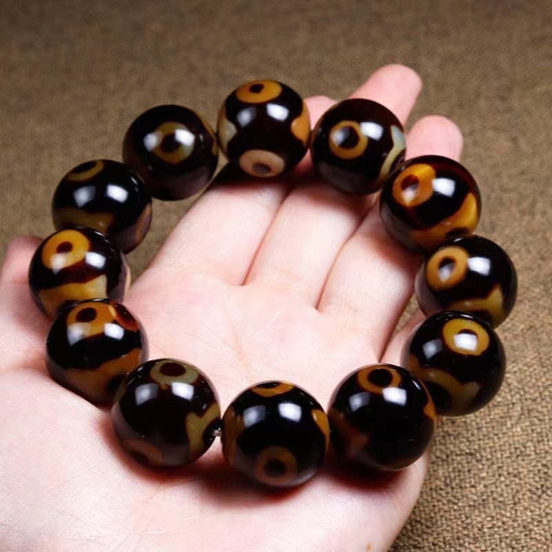 - チベット 密教 天珠 虎牙三眼財神天珠 西蔵天珠手串 手串 仏珠 ブレスレット 風水 厄除け 縁起物 開運 守り神 金運 装飾 ZH1869