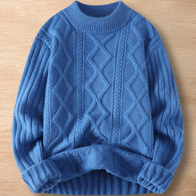 > Y117-M ブルー 新品DCKMANY ウール混 ケーブル編み アランニット クルーネック セーター 厚手 暖かい 長袖 メンズ プルオーバー トップス