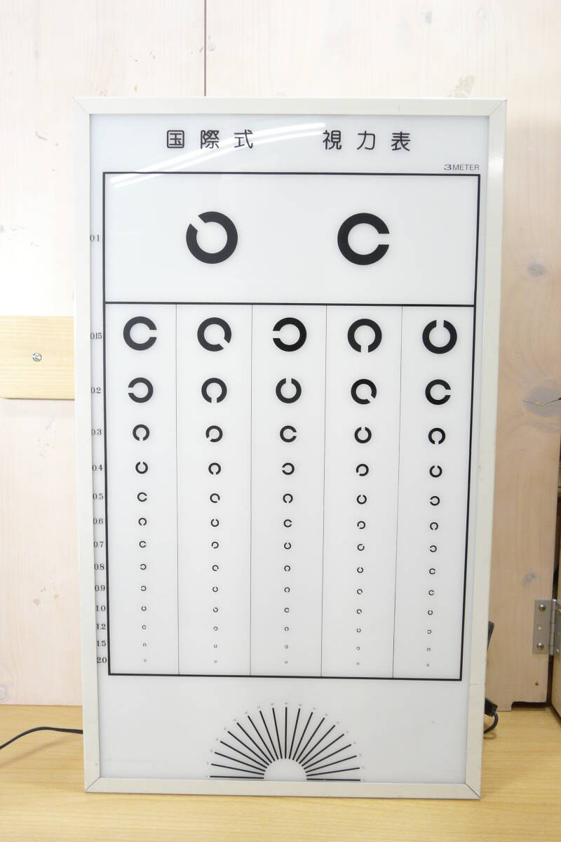 > 【レトロ感★インテリア小物に】国際式 視力表◆蛍光灯 内照式◆視力測定 視力検査 3m◆撮影道具◆1996年製◆