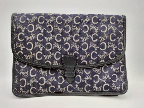 - 再 N323 1円~ 中古品 セリーヌ CELINE セカンドバッグ クラッチバッグ Cサルキー マカダム キャンバス ネイビー系