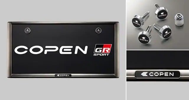 > トヨタ純正 LA400K コペン GRスポーツ用 ブラックメッキ調 ナンバーフレーム2枚& ロックボルト4本 セット 2019.10~ 流用可能 ダイハツ