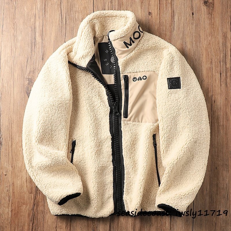 - 新品特売*フリースジャケット メンズ 秋冬 スタンドカラー 裏ボア 厚手 秋冬 ブルゾン ジャンバー アウター カジュアル 個性 ベージュ M