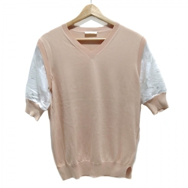 - クロエ Chloe 半袖セーター/ニット サイズXS - ピンクベージュ×白 レディース Vネック/シースルー 美品 トップス