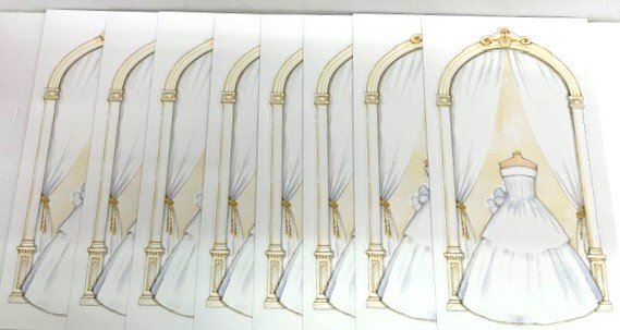 - メッセージカード 結婚式 ウェディングドレス 8枚セット 16x28.7cm 厚紙 ファッションカード 招待状 手紙 便箋 68518 ★*