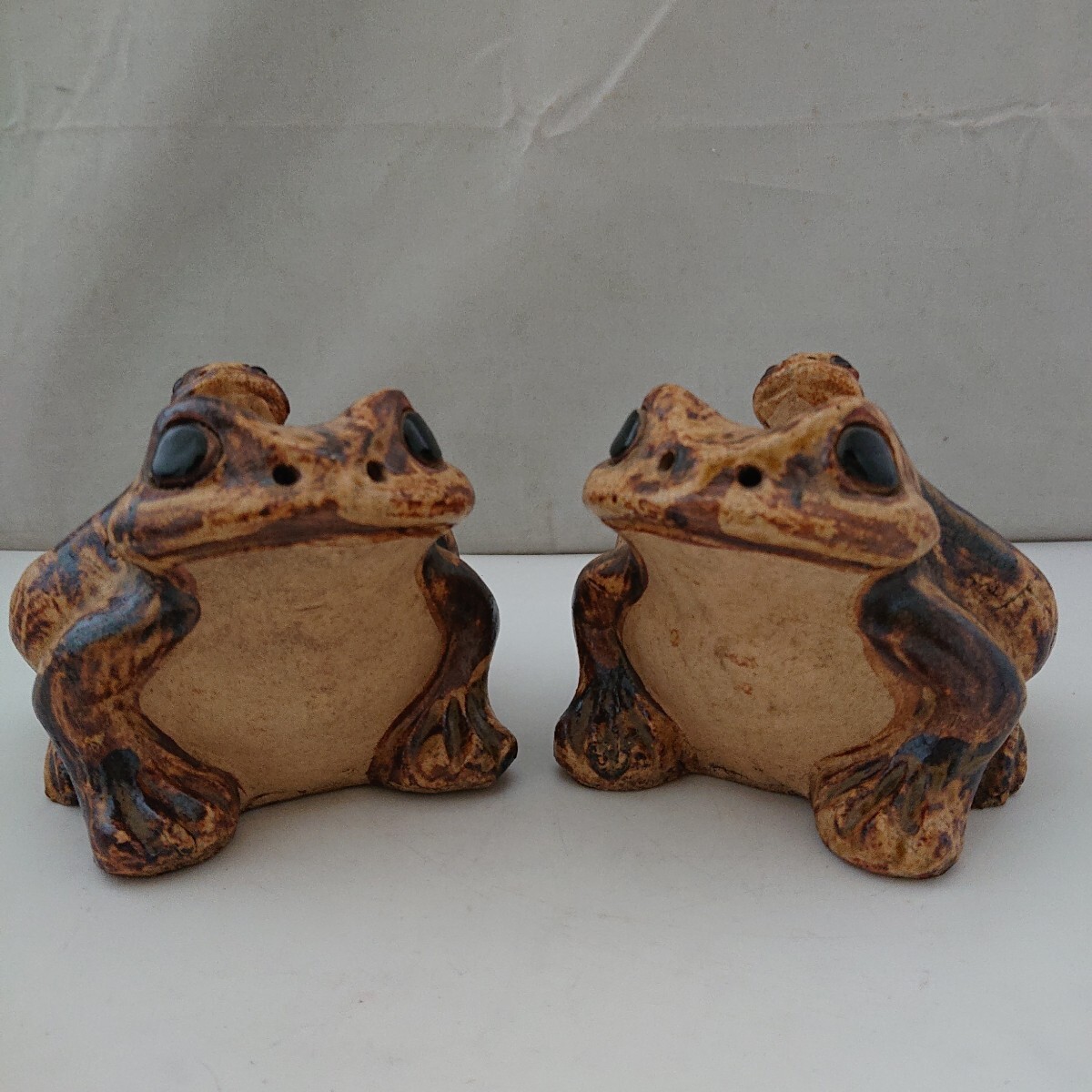 - 【蛙の置物まとめ売り】信楽焼 親子蛙 同種2点 陶器 縁起物 金運 交通安全 長寿 レトロ 当時物 現状品 ぷらみ1112 59